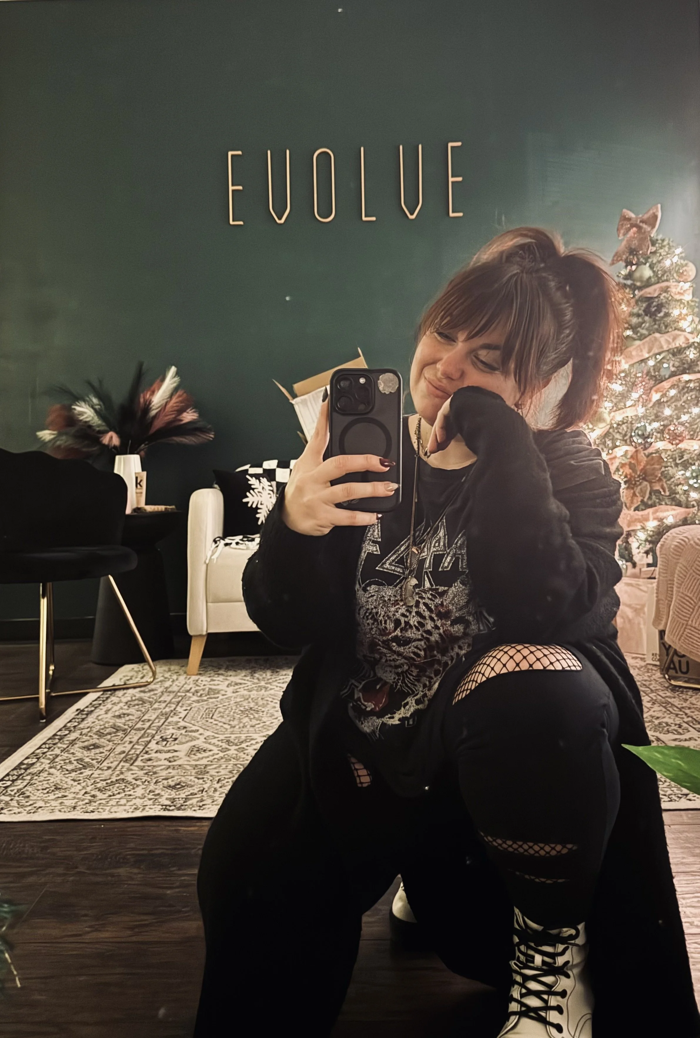 I have been creating the intimate, cozy space that is now Evolve Style + Co. for 3 years now! You walk in, you’ll notice the warm details—blankets for comfort, a heated shampoo bowl blanket in the colder months, snacks and drinks for those longer appointments, and even music of your choice. If you’re someone who just needs a break from it all, I also offer silent appointments with dimmed lights for a serene, restorative vibe.
